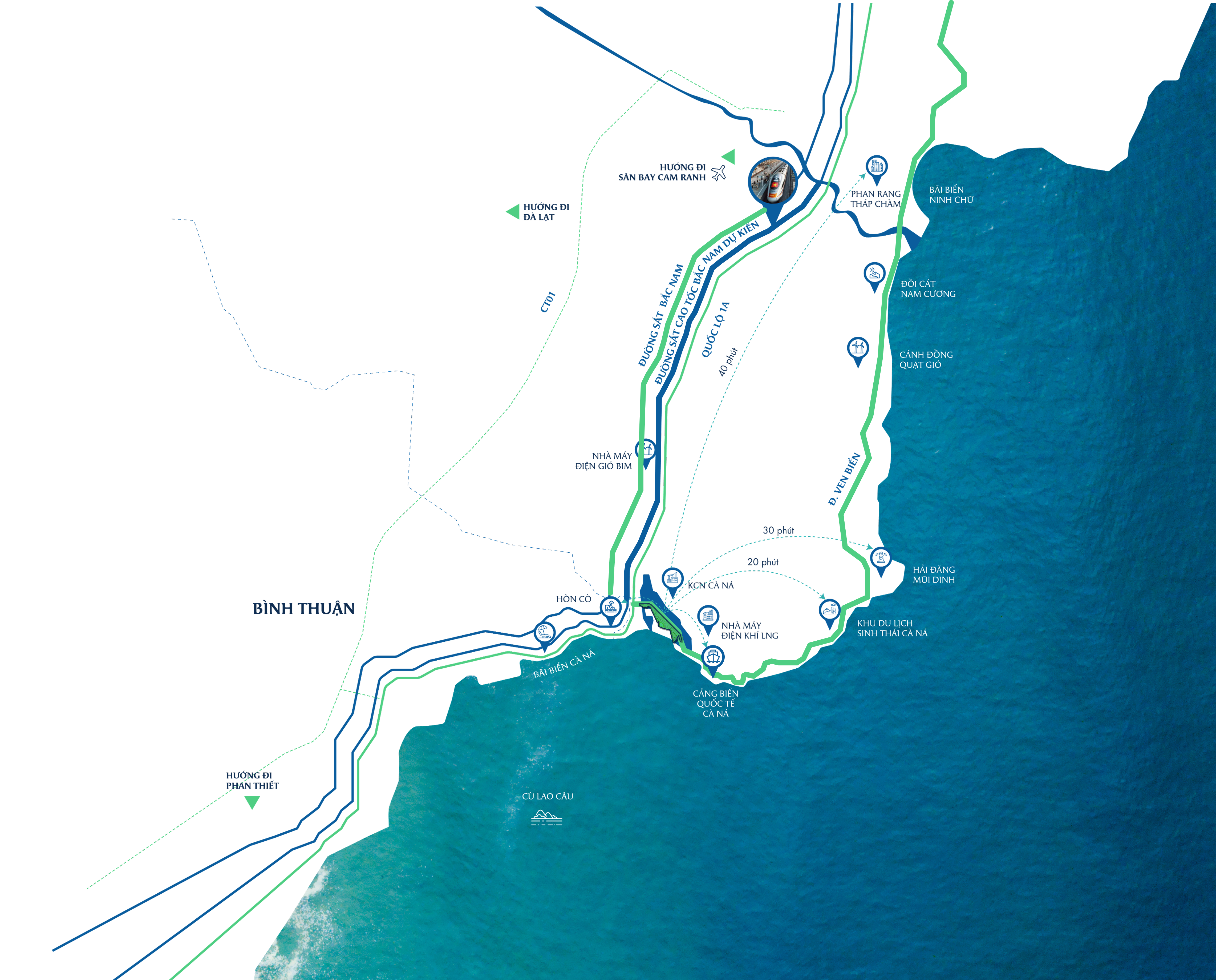 Một đô thị thương cảng đáp ứng trọn vẹn cuộc sống tiện nghi sánh ngang với các đại đô thị tại Việt Nam với quy hoạch bài bản, hệ cảnh quan sinh thái, trung tâm thương mại sôi động và các dịch vụ giáo dục, y tế, an ninh đáp ứng đầy đủ cho cư dân. Cà Ná New City không đơn thuần là một chốn an cư trọn vẹn mà còn là tâm điểm kinh doanh và giao thương sầm uất.